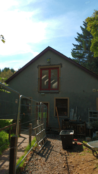 A fire-proof wall was constructed, enclosing the stairs in a safe space. This provided us with an easy access route from the outside upstairs which could be screened off from downstairs activities should needs be.