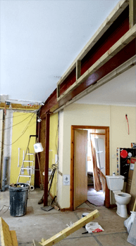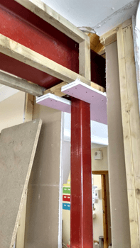 A substantial new steel infrastructure was required to support the new upstairs room, to be concealed in, and to reinforce, the downstairs walls.